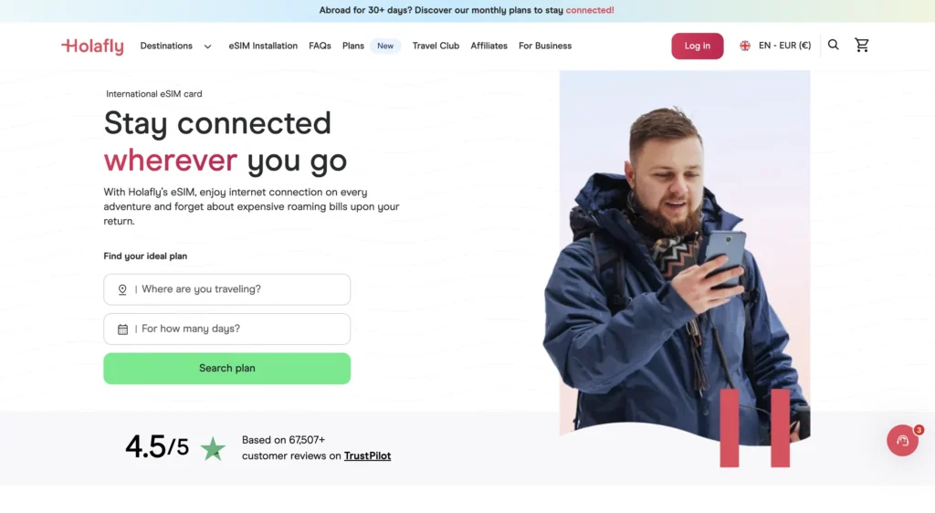 If you’re planning a longer trip (I’m talking 10+ days), Holafly really shines. They offer unlimited data plans that cover multiple countries, perfect for travelers who need consistent connectivity on longer adventures. They’ve even launched a new monthly subscription plan – Holafly Plans – where you can choose between 25GB or unlimited data, giving you flexibility for full-time travelers or those on long trips.